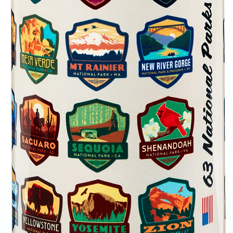 All 62 of your beloved National Parks can be found on this water bottle in this unique icon design. This water bottle is a great companion for your next national park trip and to take with on-the-go!